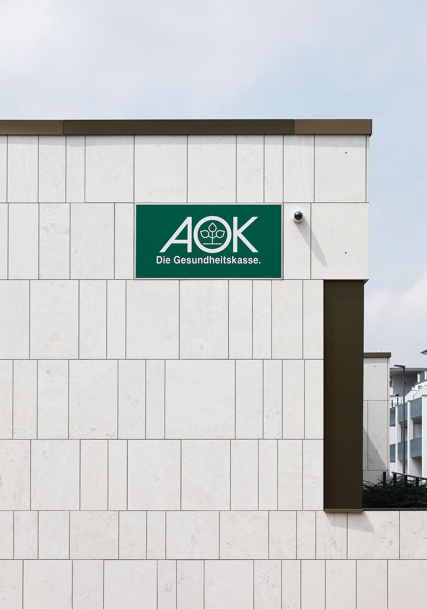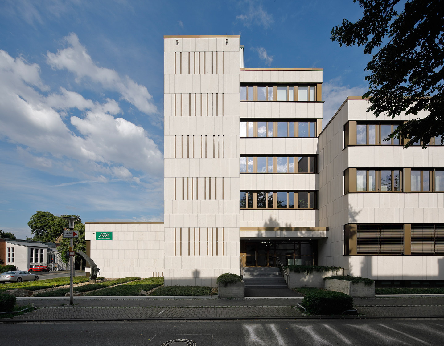 Das 1976 errichtete Gebäude der AOK-Geschäftsstelle in Hamm wies aufgrund der Verwendung von minderwertigen Materialien eine marode Fassade auf, die zudem den heutigen energetischen Ansprüchen bei weitem nicht mehr genügte. Die Notwendigkeit, auch die Verankerung der Fassadenplatten zu erneuern, eröffnete auch die Möglichkeit, die Fassade ganzheitlich neu zu entwickeln und dem Gebäude ein zeitgemäßes Erscheinungsbild zu geben.