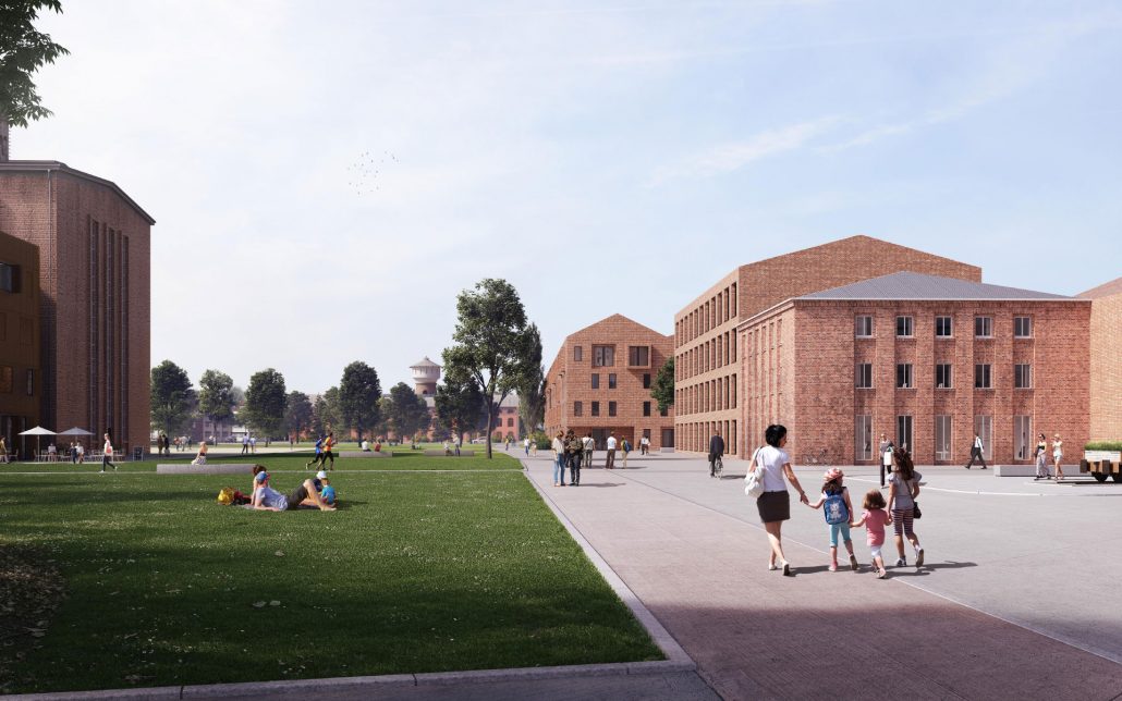 Auf einer Fläche von rund 21.000 m2 entsteht ein neues Stadtquartier auf dem Gelände des ehemaligen Bahnausbesserungswerkes der Deutschen Bahn in Leverkusen Opladen.