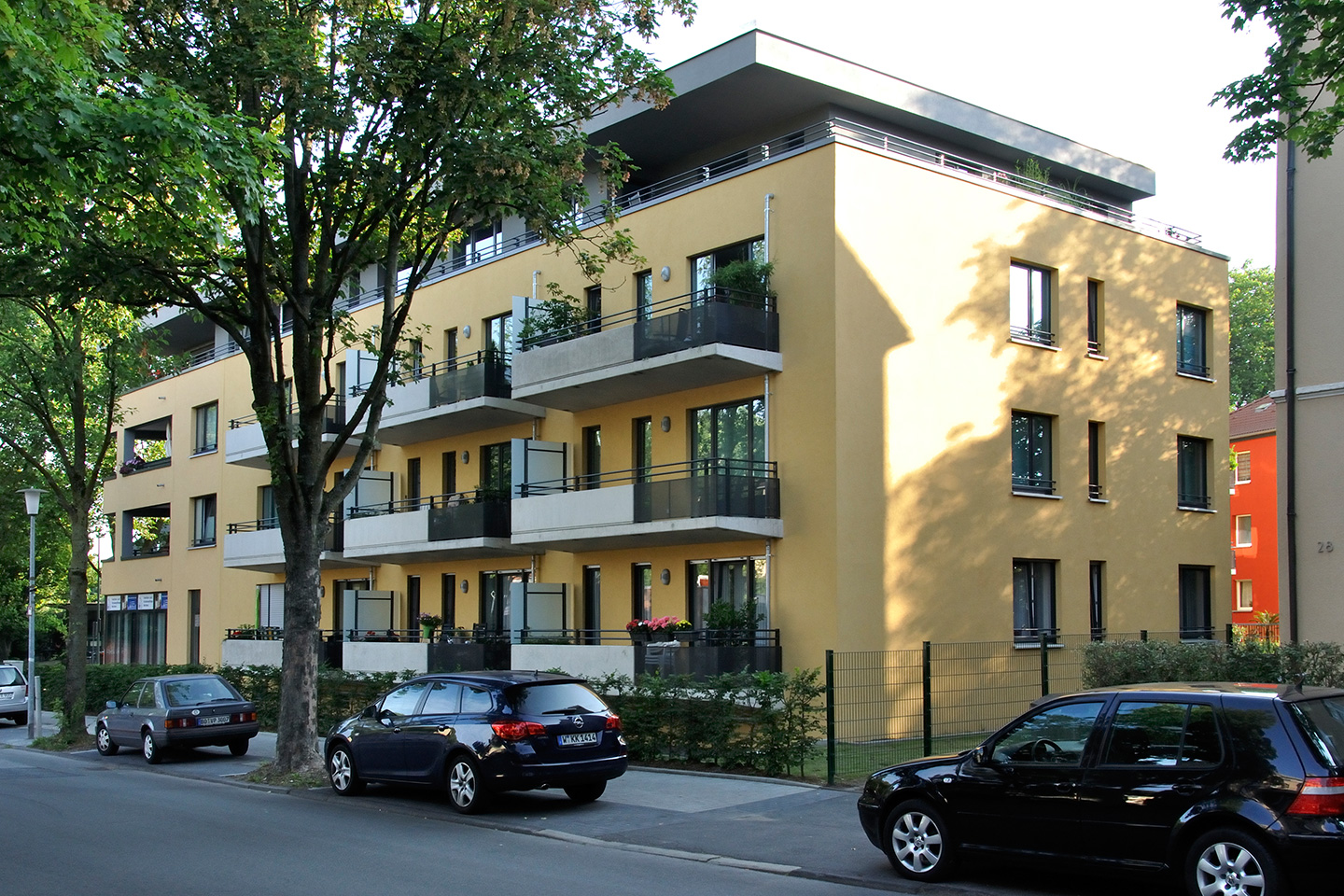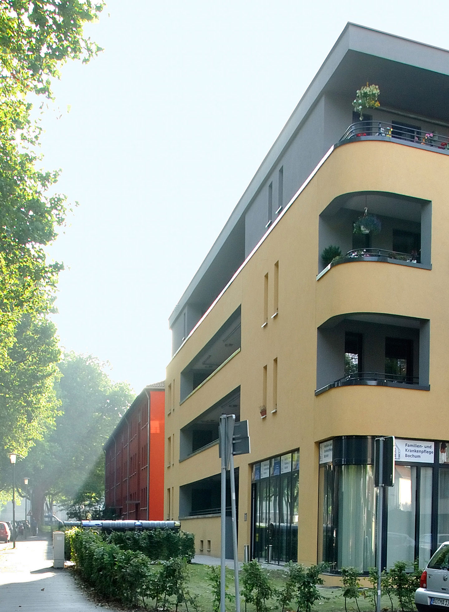 Im zentrumsnahen Bochumer Quartier Altenbochum plante Rübsamen + Partner neben der Modernisierung des aus den 30er und 50er-Jahren stammenden Bestands eine Reihe neuer Wohnbauten gezielt im Sinne eines solchen zukunftsfähigen Weiterbauens. Das Mehrfamilienhaus am Freigrafendamm umfasst 25 Wohneinheiten sowie 1 Gewerbeeinheit.