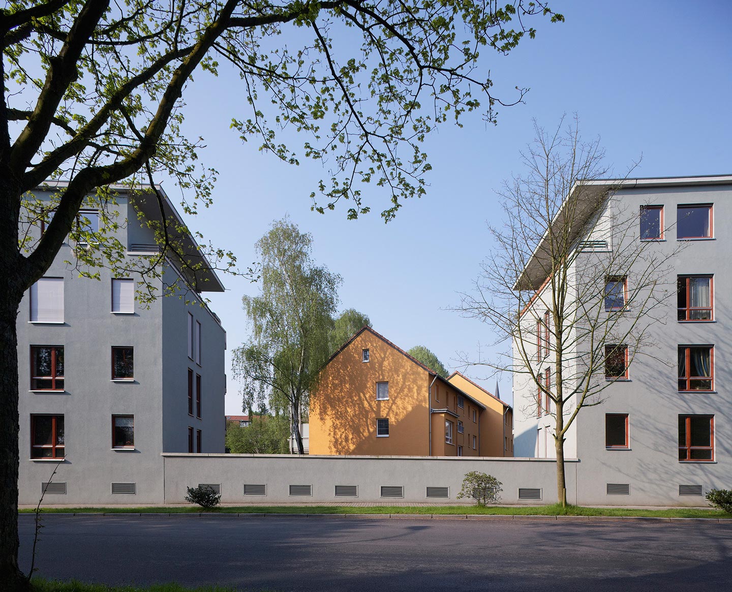 Die neu geschaffenen Wohnhäuser bieten ein erhebliches Maß an „Mehr-Qualität“ gegenüber den vorhandenen Zeilenbauten; zugleich gelingt eine behutsame Verdichtung der vorhandenen Bebauung, ohne auf zeitgemäße Grundriss- und Gestaltqualitäten zu verzichten. Alt- und Neubauten profitieren gemeinsam von einer Aufwertung des Quartiers, die aus einem ganzheitlichen Umgang mit öffentlichem Raum und privaten Zonen im Sinne eines lebenswerten, dauerhaften Stadtviertels entsteht.