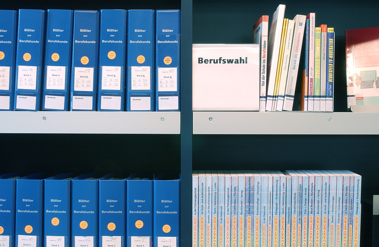 Aufgrund einer Initiative der Bertelsmann Stiftung entstand in der Stadtbücherei Bochum die sogenannte "Job-Karriere-Bibliothek". Innerhalb der wichtigen städtischen Einrichtung hat die von Rübsamen Partner entworfene neue Bibliothek einen funktional wie gestalterisch bewusst eigenständigen Charakter. Als offene, transparente Zone lädt sie nicht nur zum Stöbern und Lesen, sondern auch zu Gesprächen in kleiner Runde ein. Die alte Aufteilung mit Einzelregalen wurde aufgelöst und ein zentrales Regal als raumdefinierendes Element eingeführt. Gemeinsam mit den Arbeitsplätzen und dem Lesetisch formuliert es eine Raumfigur, die der Bibliothek eine freundliche, offene und zweckmäßige Identität verleiht.