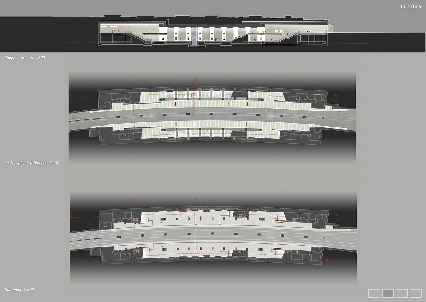Die U-Bahn Haltestelle im Hauptbahnhof Dortmund ist nach rd. 25 Jahren des Betriebs an ihre Leistungsgrenze gestoßen; aufgrund von mehr als 50.000 Nutzern täglich (bei steigernder Tendenz) ist die Erweiterung der Verteiler- und Fahrebene zwingend. Es gilt, aus den baulichen Gegebenheiten und planerischen Vorgaben jenes Potential zu erspüren, welches eine architektonische oder bestenfalls tektonische Konzeption ermöglicht.